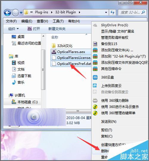 3、在這個插件的文件夾后面,可以看到這個Optical Flares插件就是在Video copilot的文件夾中。這時就可以在ae的插件安裝目錄中找到它的插件并把多出來的進行刪除。