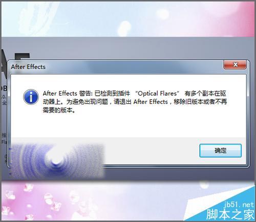 當在啟動ae軟件的時候,它總是在初始化的時候彈出一個After Effects的警告框。已檢測到插件Optical Flares有多個副本在驅動器上,為避免出現問題,請退出After Effects,移除舊版本或不再需要的版本。遇到這個問題要怎么樣才能把它的警告框取消掉。