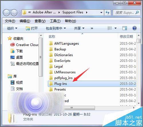 5、在打開的界面中,在列表中找到Plug-ins的文件夾。這個文件夾就是安裝插件的常用文件夾。如果想要找到電腦中安裝的有哪些插件的話,也可以在這個文件夾中進行查找。