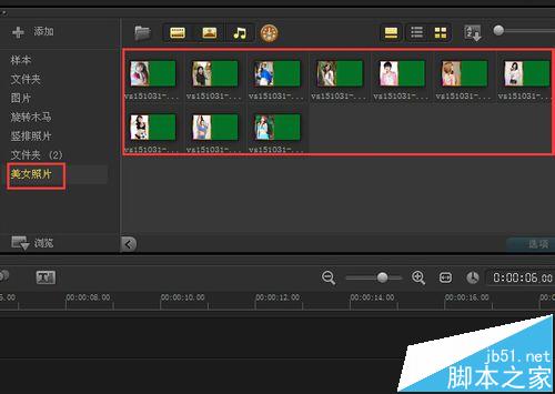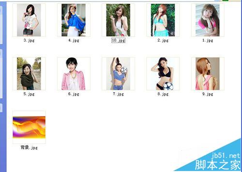 8、重復第五步的操作,一直到把10張美女照片都加上漂亮邊框為止,這樣十張帶漂亮邊框的圖片就都在素材庫美女照片文件夾里了,然后把這個項目文件保存一下,點文件,另存為,找一個保存的路徑,點擊保存。我們看看素材庫美女照片文件夾里做好的照片,如圖所示。