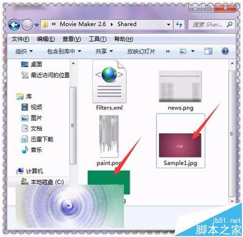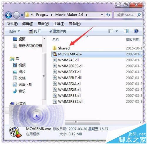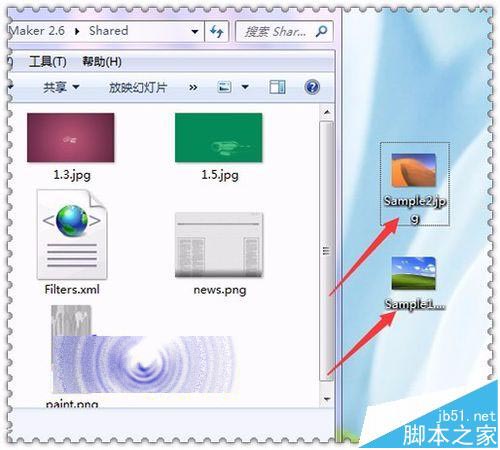 4、接著在它的列表中可以看到在它的軟件程序上面有一個(gè)Shared的文件夾。這個(gè)文件夾就是它的默認(rèn)預(yù)覽窗口中的圖片。可以看到當(dāng)把這個(gè)文件夾打開之后,就可以看到它的這兩張圖片。