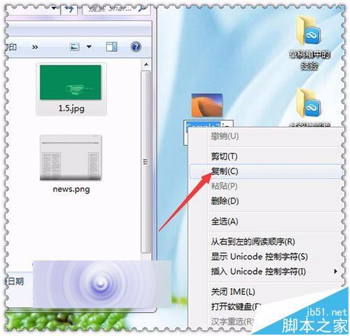 7、把原來的兩張圖片放到桌面上,然后分別的把它們的圖片名稱復(fù)制到這兩個(gè)圖片的上面。如果不能把們的圖片名稱進(jìn)行一個(gè)替換的話,軟件也是不能識(shí)別的。在桌面上的一張圖片上面點(diǎn)擊重命名,然后點(diǎn)擊復(fù)制。接著在文件夾中的圖片上面點(diǎn)擊重命名,接著點(diǎn)擊粘貼。就把第一張圖片的名稱替換好了。