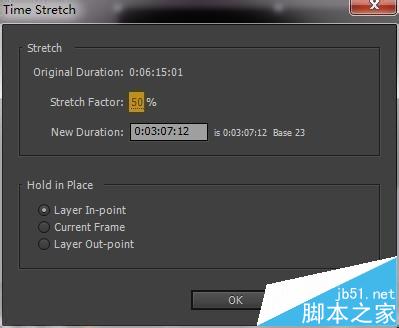 5、比如當前的視頻時長總長為6分15秒,當將stretch factor的是指設置為50,視頻的時長將縮短為約3分8秒,將stretch factor的數值設置為200,視頻將擴展為12分30秒,視頻就減速了。