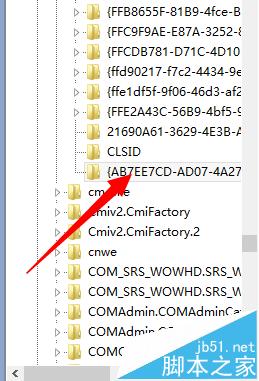 3、進入注冊表界面,定位到HKEY_CLASSES_ROOT/CLSID/{AB7EE7CD-AD07-4A27-B986-C7D5A31C8098}項下