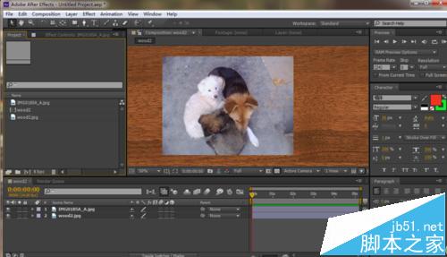 1、打開AE,導入你的素材,這里我以2張圖片為例