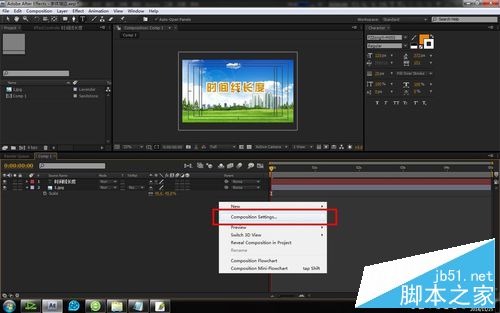 2、在時間線空白處,右鍵找到并打開“合成屬性”。