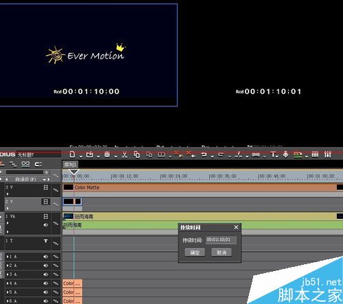 11、在色塊上右鍵點擊,選擇 持續(xù)時間,在時間窗口內(nèi)輸入 00011001 (就是一分十秒零一),對兩個色塊都是同樣的操作