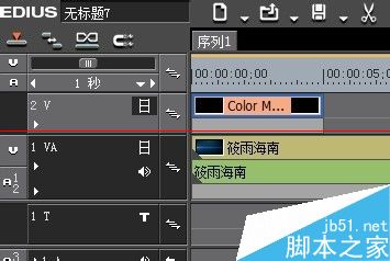 10、接下來我們要把兩個色塊的時間改成和視頻素材一樣,通過觀察屬性,我們得知這個海南游的素材時間是一分十秒零一