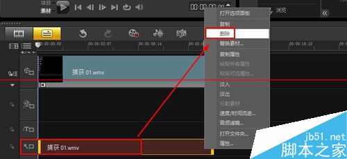 6、然后我們在分割出的音頻軌上單擊鼠標(biāo)右鍵,選擇刪除音頻。