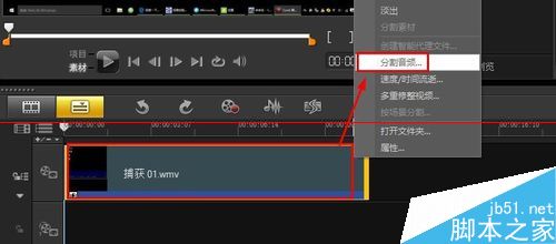 5、當(dāng)然我們也可以在視頻上單擊鼠標(biāo)右鍵,然后出現(xiàn)的界面上我們選擇分割音頻。