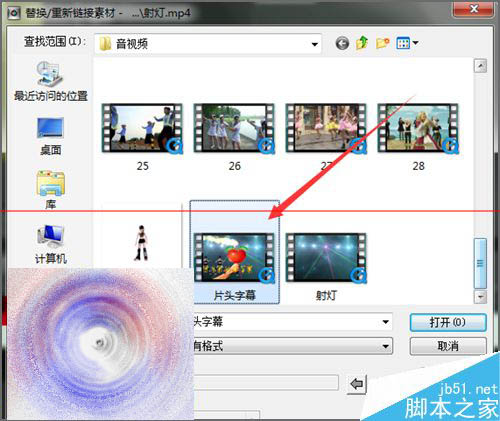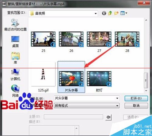 8、點擊了重新鏈接,它就會打開剛才進行打開的視頻文件位置。我們在它的片頭字幕的視頻文件上點擊一下,然后點擊打開。