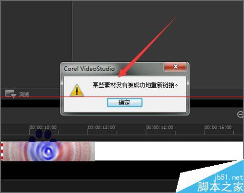 6、點擊打開,就可以看到在它的界面中彈出了一個提示框。某些素材沒有被成功的重新鏈接。點擊確定之后,可以看到在軟件的界面中,后面的一些素材已經成功的進行了鏈接,而在前面的一些素材并沒有鏈接成功,仍然是黑色的白色的條。