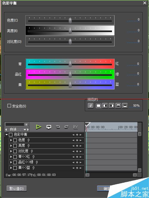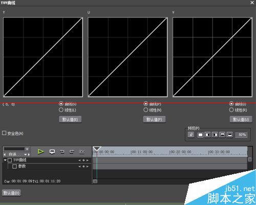 2、YUV曲線。YUV曲線通常用來調節灰色畫面,其中Y曲線調節畫面的明暗,U曲線調節藍色和黃色的平衡,V去向調節紅色與綠色的平衡。下方的時間線窗口可以對視頻畫面顏色插入關鍵幀進行控制。