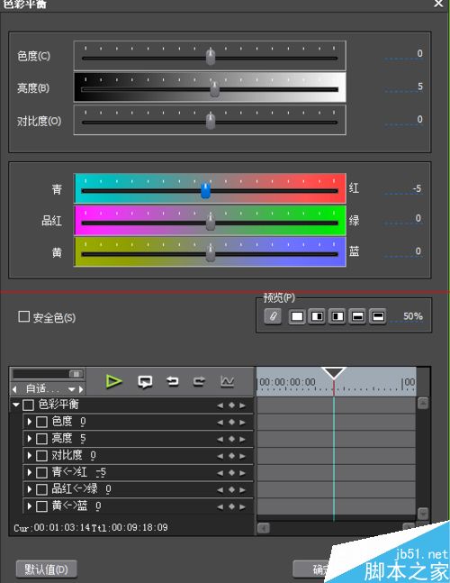 6、接著是調(diào)整視頻畫面的紅色問題,在“色彩平衡”調(diào)整窗口中可以看到,紅色過多需要增加青色,以降低畫面中紅色的比例,也是一點一點的試,當我們看到一個比較合理的值時停止。