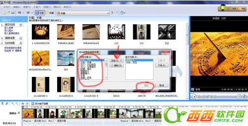 4、將圖片和音樂都按照這個方法添加到時間線上,然后右鍵單擊時間線上的圖片,選擇視頻效果,選擇喜歡的效果添加到效果中,然后單擊確定,將每個圖片都按自己所喜歡的效果添加上