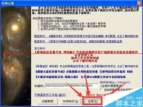 2、下載完成后打開屏幕錄像專家V2012 打開后點擊【注冊】