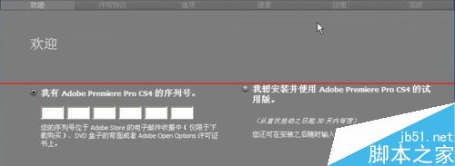 5、接下來就是破解我們的Premiere軟件,就是用我們剛才的序列號破解我們軟件,因為我們進入時會需要序列號的,沒有序列號的可以繼續選擇試用。我們有序列號。直接破解安轉就行。