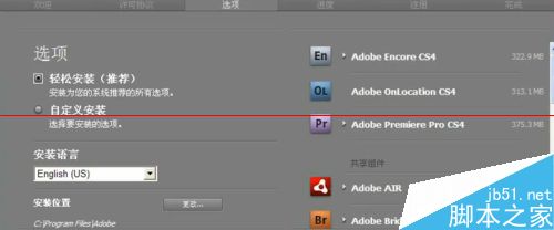 3、然后我們的運行Stup.exe的文件,這樣我們就開始安轉Premiere,按照我們安裝的進度一步一步的進行安轉就行,注意此時我們安裝的是實用版的哦,30天后會過期,我們后面有辦法的哦。同時別忘了建立桌面快捷方式哦。