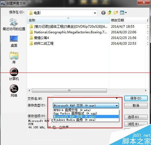 5、對于輸出的音樂素材時,我們現在‘創(chuàng)建聲音文件’,如下圖可以輸出聲音的不同格式。