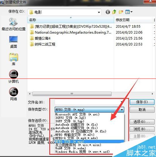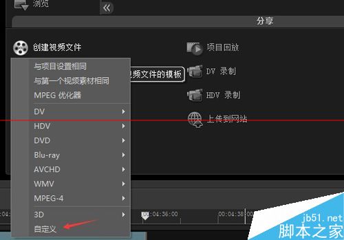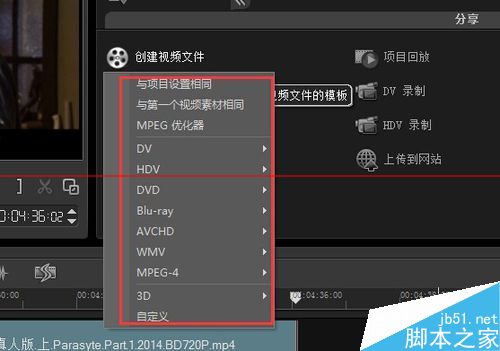 4、這里我們選擇‘創(chuàng)建視頻’選項,如下圖,進入到輸出視頻格式選項。選項有很多可以輸出DV/HDV/WMV/MPEG-4等視頻格式。讀者可以根據自己的意愿選擇輸出格式。