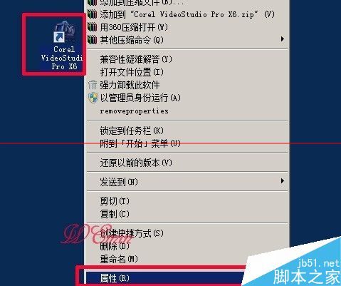 第一步,在桌面會聲會影快捷方式上點擊鼠標右鍵,選擇最下面的【屬性】。