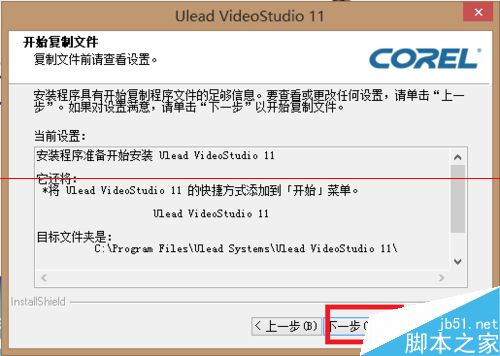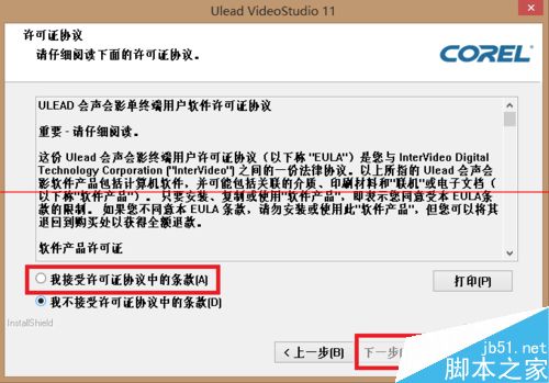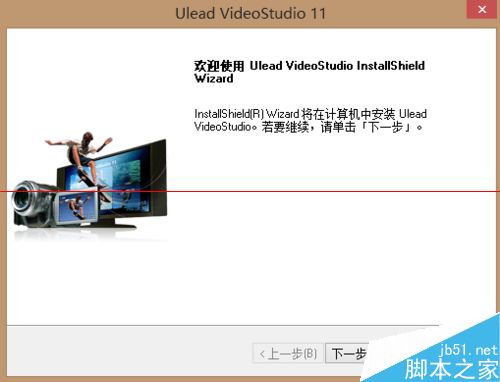 1、準備好會聲會影安裝程序,雙擊setup.exe 安裝程序,出現安裝界面,下一步。