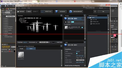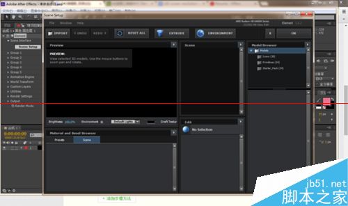 3、啟動AE,Ctrl+N新建合成,Ctrl+Y新建固態層,效果欄選擇element,特效控制臺選擇Scene Setup,出現下面的窗口,選擇導入(import),即可導入三維模型,選擇OK確定,這是看見AE合成窗口已經出現了我們的模型了。