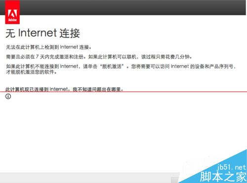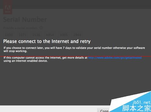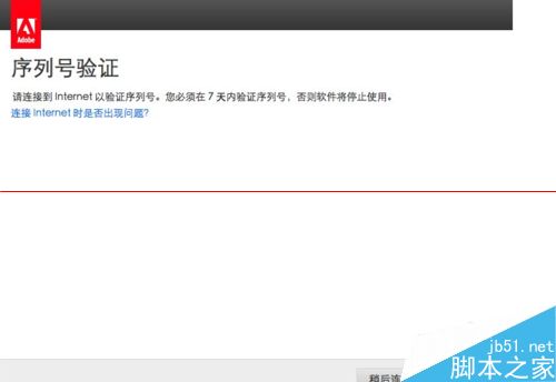 3)添加完序列號,點擊Next(下一步)的時候,Adobe會驗證序列號,因為我們已經斷網了,所以此時會提示要我們聯網,直接無視,點擊Connect Later(稍后連接)。