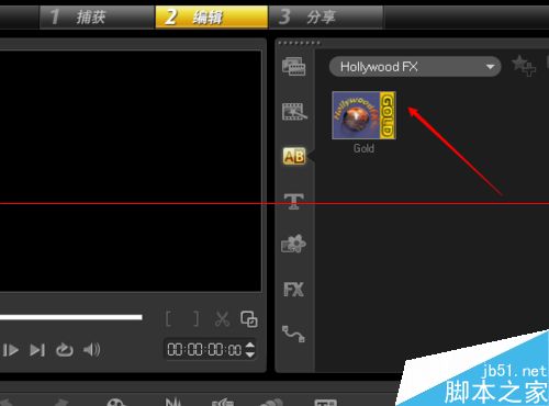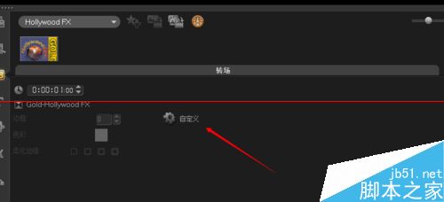 3、將Hollywood FX拖拽到兩個素材之間,然后點擊“自定義”按紐。接下來是注冊: