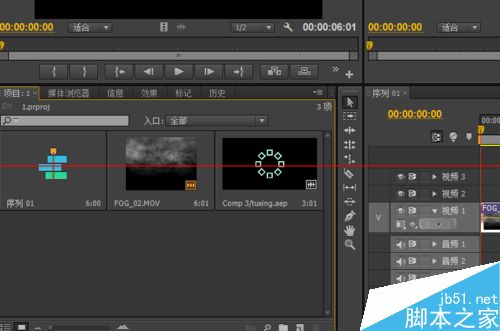 4、我們在premiere項目當中看到素材了