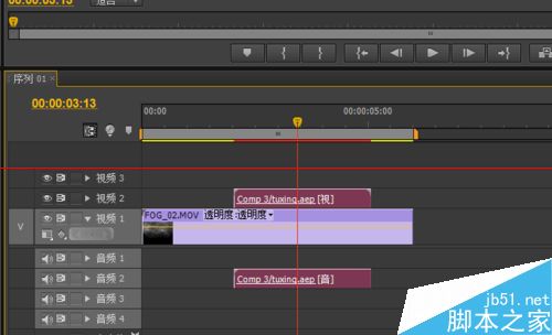 3、接著就是將AE的合成文件直接拖到premiere當中