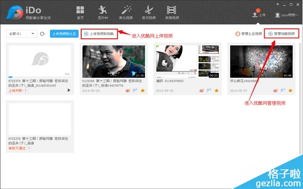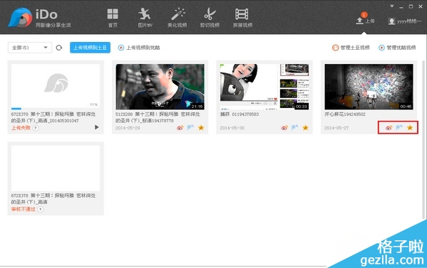在上傳列表,點擊“管理視頻”,跳轉到土豆網進行視頻管理