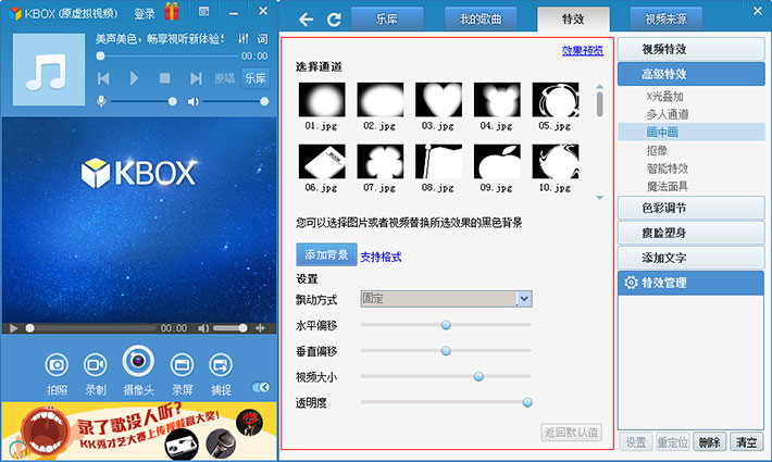KBOX虛擬視頻有一款非常還用的功能就是視頻美化,KBOX的這個功能可以喜歡拍照的人美白、瘦身,還可以更換背景等等,那kbox虛擬視頻的這些功能怎么使用呢?小編給大家分享kbox虛擬視頻特效功能使用教程,具體跟大家介紹下KBOX怎么瘦身、美白、更換背景等。