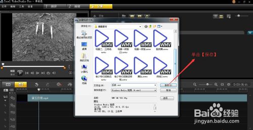 3、生成視頻,單擊【分享】按鈕,選擇【創(chuàng)建視頻軟件】按鈕,會聲會影提供的生成視頻格式比價多,可以根據(jù)自己的播放器和用途選擇生成格式,此例是生成wmv格式。