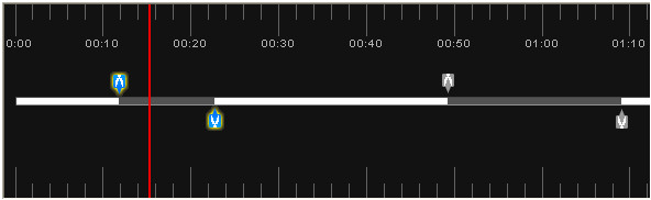 2、將播放指針移到需要剪切的位置,點(diǎn)擊視頻剪輯,時(shí)間軸上會(huì)出現(xiàn)剪切圖標(biāo),拖動(dòng)圖標(biāo)調(diào)整剪切范圍,剪切圖標(biāo)之間的內(nèi)容表示刪除部分。如需剪切多個(gè)片段,則添加多個(gè)剪切區(qū),步驟同上。(注:如需恢復(fù)被剪切的視頻內(nèi)容,播放指針移到剪切區(qū)內(nèi),點(diǎn)【取消剪切區(qū)】即可。