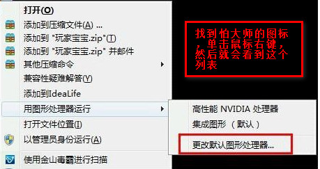 第一步、鼠標(biāo)右鍵點(diǎn)擊拍大師圖標(biāo),選擇“用圖形處理器運(yùn)行”--“更改默認(rèn)圖形處理器”
