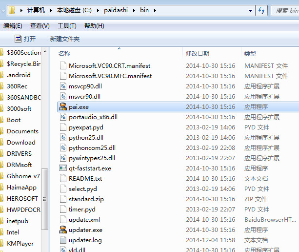 (如果沒有桌面選項(xiàng),你可以在拍大師的安裝目錄下,找到bin文件夾,在bin文件夾里找到或拍大師的pai.exe,選擇了點(diǎn)打開)