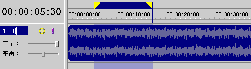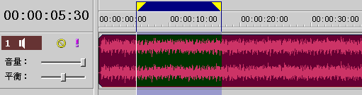 當音樂文件被打開以后,文件的波形圖會顯示在音樂編輯區中,顯示的顏色狀態可以區分為:被選中是的狀態和沒有被選中時狀態