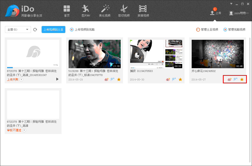 在上傳列表,點擊“管理視頻”,跳轉到土豆網進行視頻管理;
