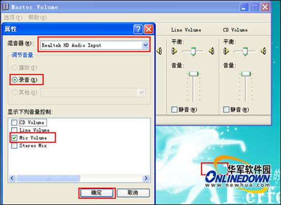 接下來雙擊屏幕右下角的小喇叭圖標(biāo),在打開的窗口中單擊“選項(xiàng)”菜單選擇“屬性”;打開一個(gè)屬性窗口,在此選擇錄音,然后再選擇麥克風(fēng)。如圖4所示。