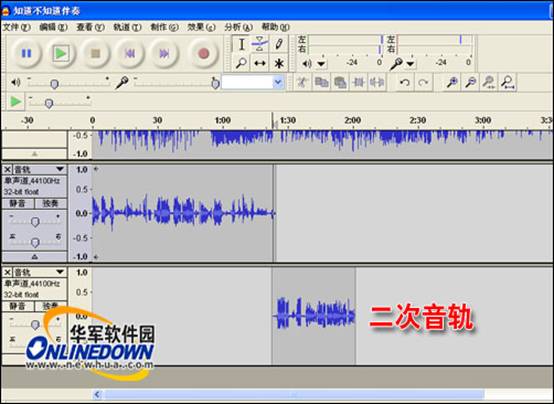 在錄制過程當(dāng)中如果停止的話,想要接著錄的時(shí)候,再次單擊“錄音”按鈕即可進(jìn)行再次錄制,不過每次錄制會(huì)彈出一個(gè)新的音軌。注意停頓再接著錄的時(shí)候,必須要把光標(biāo)移動(dòng)到剛才停止的位置,然后再進(jìn)行錄制這樣才能接得上。如圖7所示。