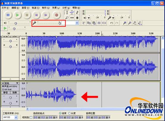 歌曲錄制完成以后,就開始對音樂進(jìn)行編輯了;單擊工具欄上的“