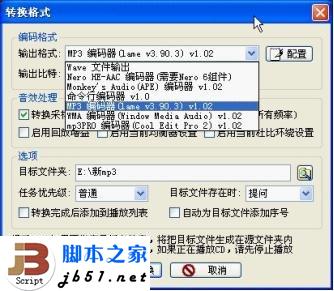 第二:進入轉換格式菜單。在輸出格式中的下拉菜單中選擇“MP3編碼器”(版本不用管)