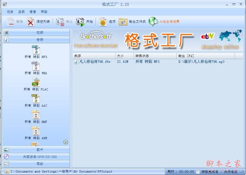2,我們可以看到界面很簡單,功能非常強大,我們選擇“音頻”欄目