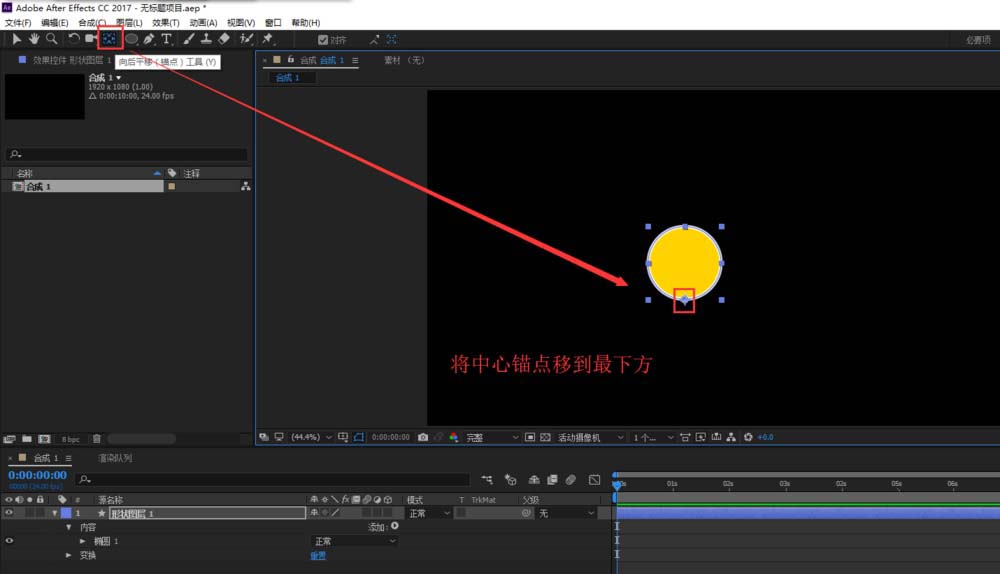3、找到并切換到工具組中的錨點工具,選中繪制的正圓,將這個圓的錨點移動到圓的正下方位置上。