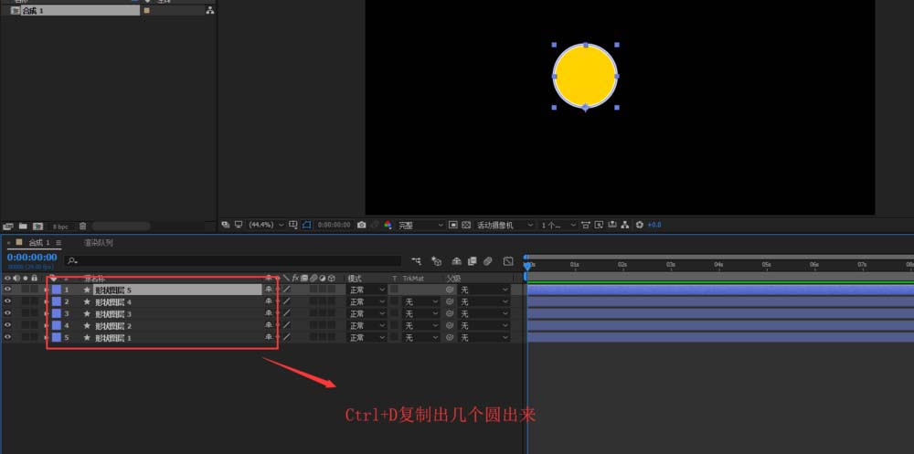 4、選中形狀圖層1,直接按快捷鍵Ctrl+D執行復制操作,多按幾次得到多個相同的正圓形狀圖層。