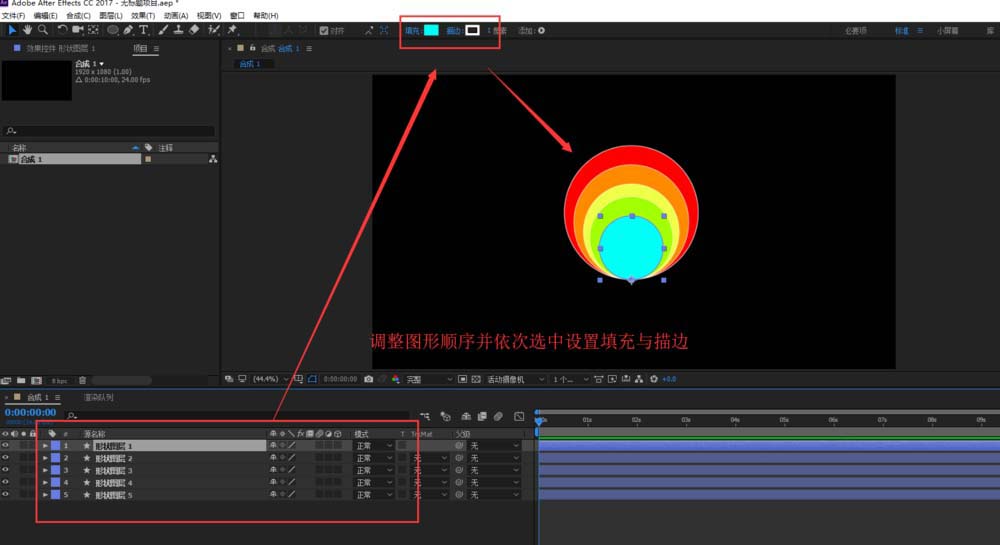 ae中想要繪制簡單的圖形,比如一個多種顏色疊加的圓中圓的圖形出來,該怎么繪制呢?下面我們就來看看詳細的教程。
