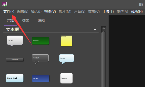 1、首先,打開一個(gè)的BB FlashBack的進(jìn)入該界面當(dāng)中,點(diǎn)擊菜單中的 文件 菜單。