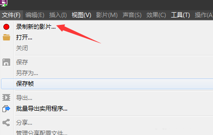 2、點(diǎn)擊了文件的菜單之后,彈出了下拉菜單選中為錄制新的影片的選項(xiàng)。