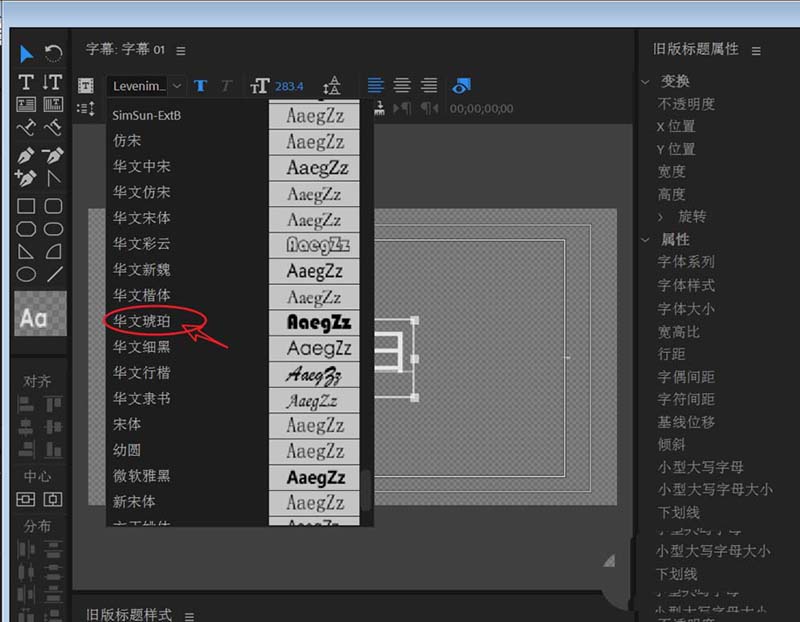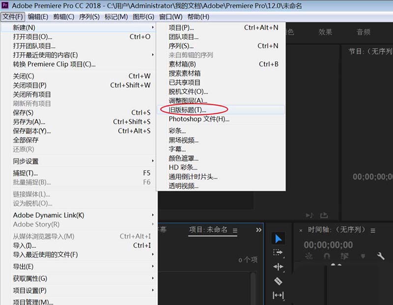 2、通過執行“文件>新建>舊版標題”命令,建立一個新的舊版字幕文件。